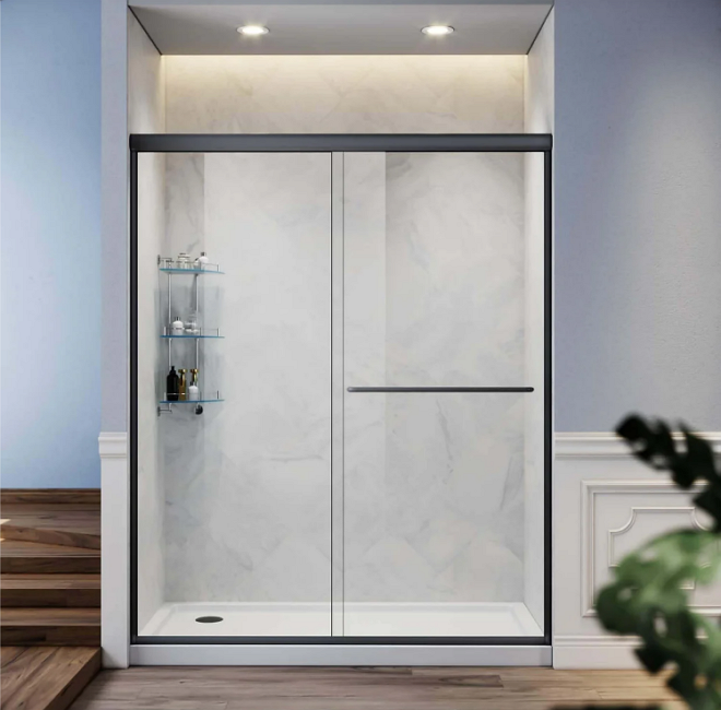 SUNNY SHOWER 48" x 72" Double Sliding Shower Doors, Black Finish / Brushed Nickel Finish / Chrome Finish