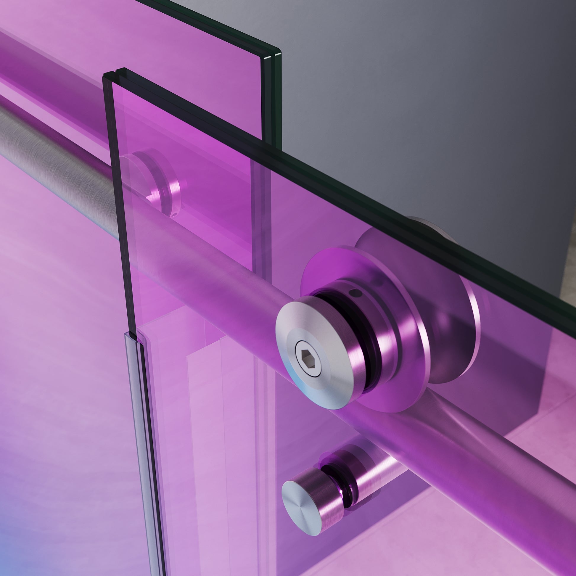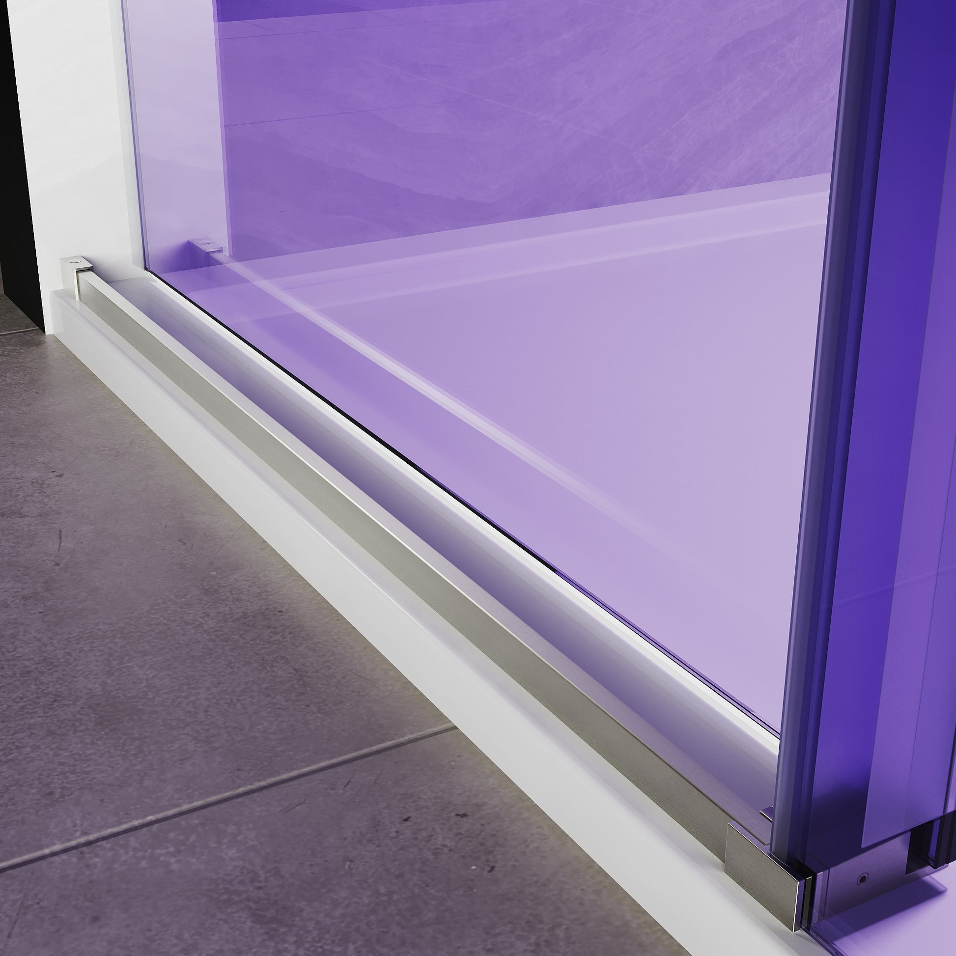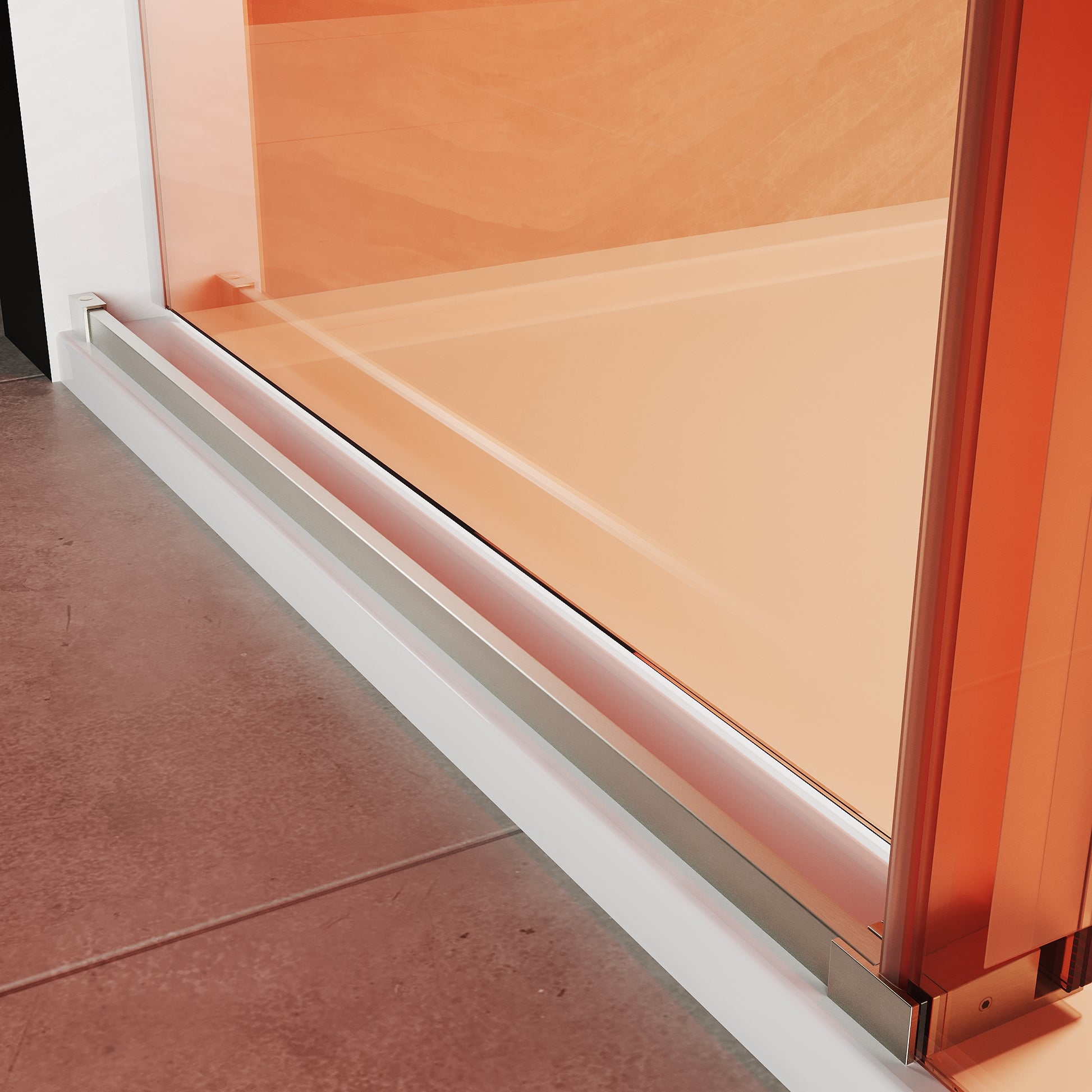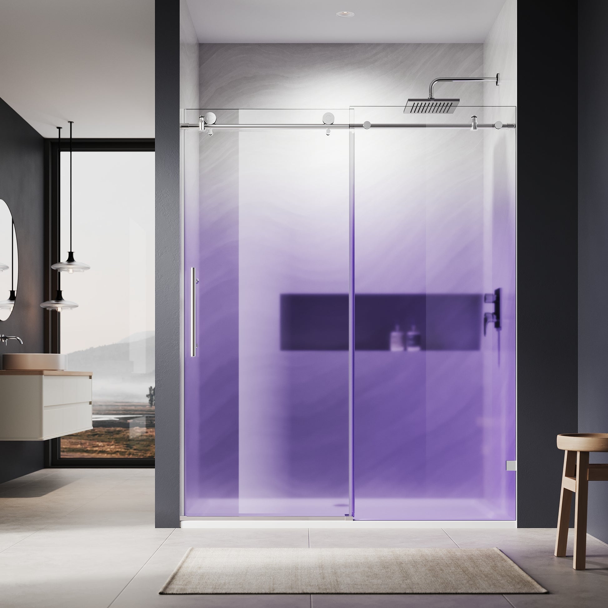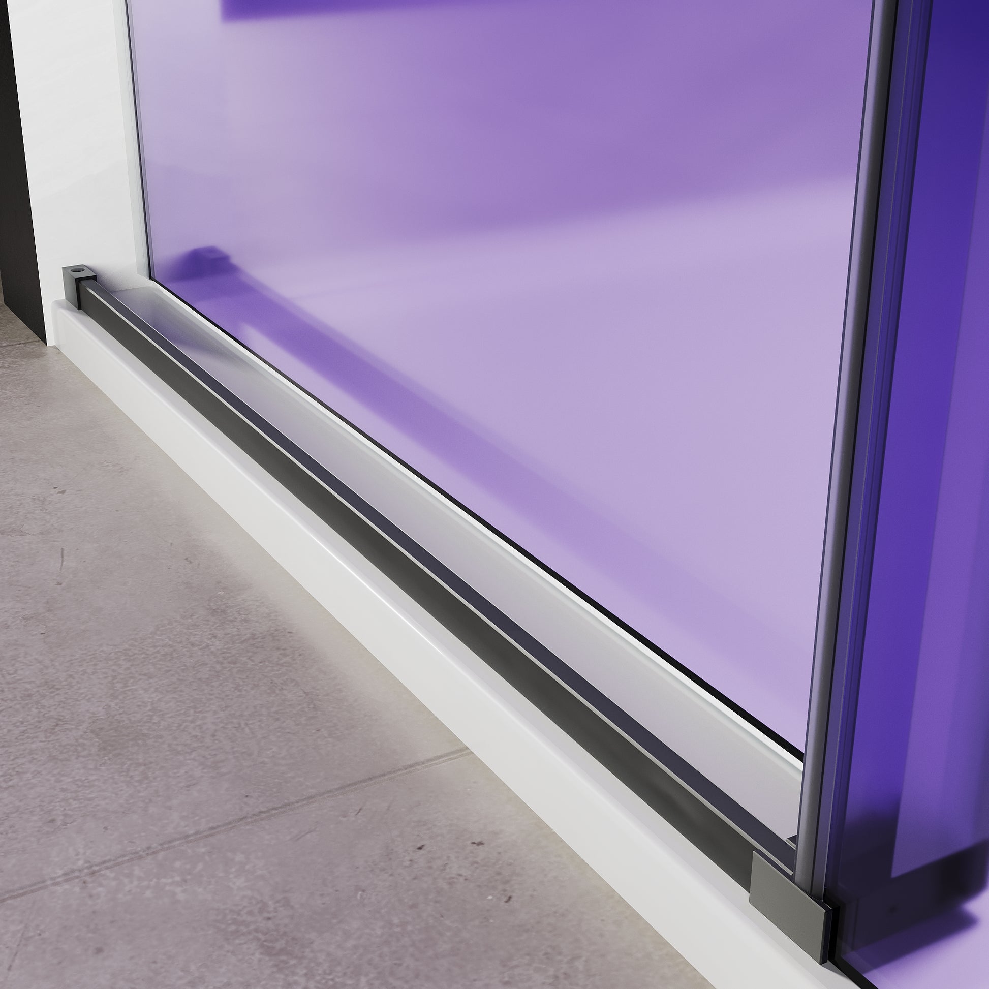 The SUNNY SHOWER Gradient Glass Shower Enclosure features 4+4 ultra-clear laminated glass in Purple, Orange, or Dual Gradient, paired with Polished Silver, Matte Black, or Brushed Silver frames. Custom colors and mixed-frame options are also available.