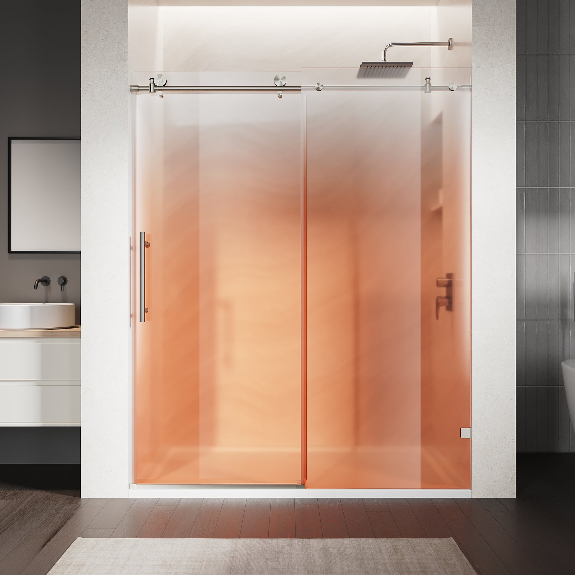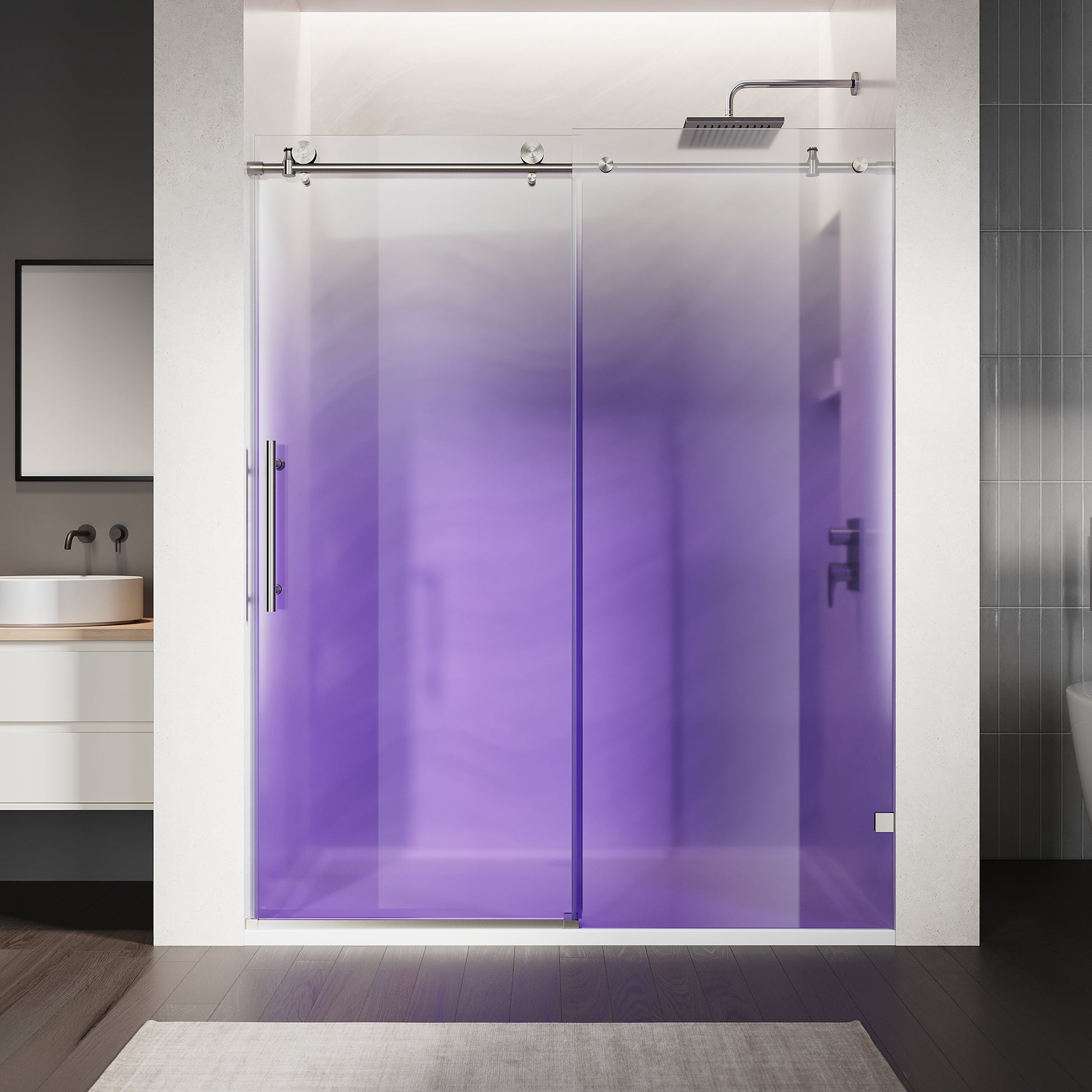 SUNNY SHOWER Custom Gradient Glass Double Sliding Shower Doors, Black Finish / Bright Silver / Brushed Silver