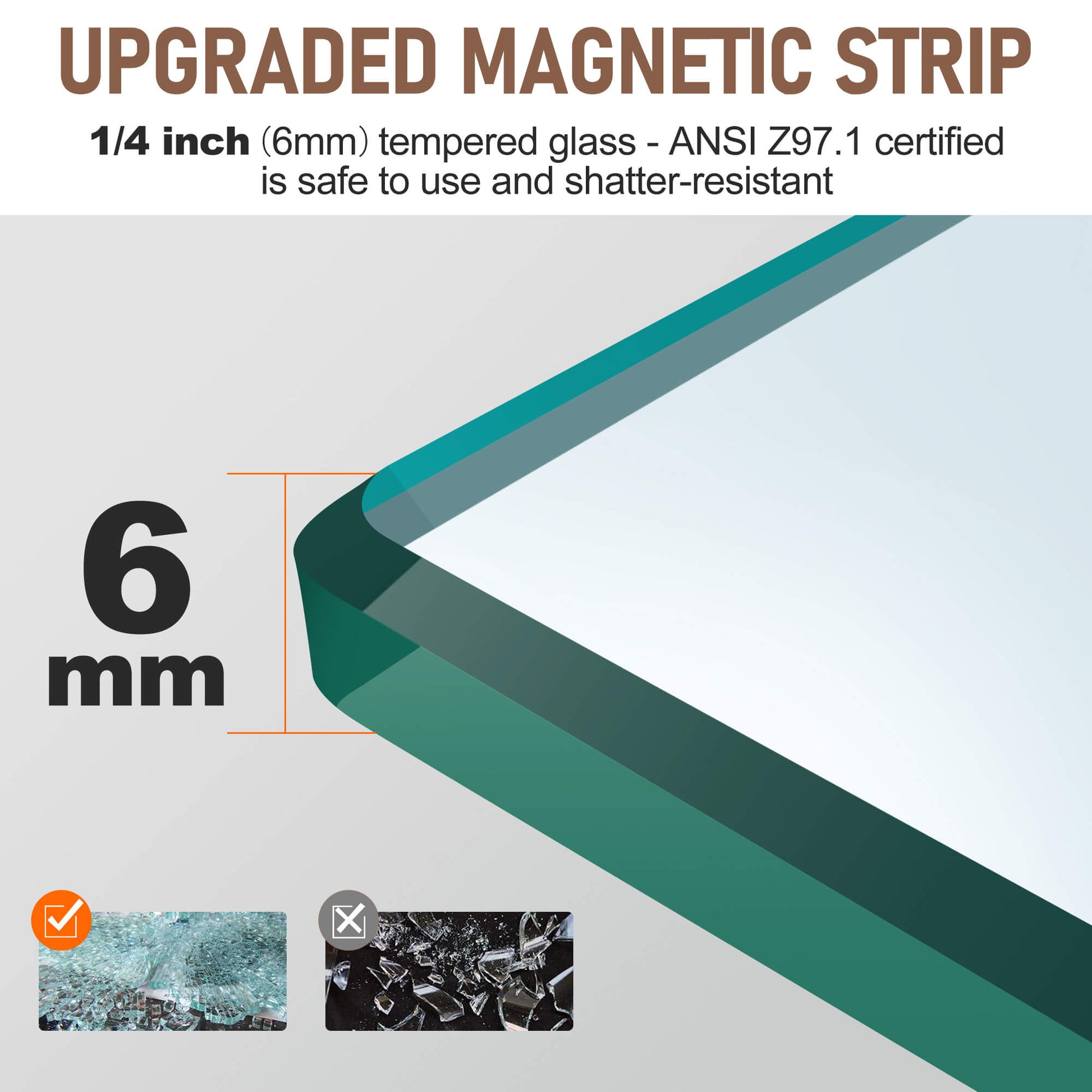 Seal strip on both sides of the glass. Magnetic strips are placed in the seal strip to strengthen sealing, prevent water leakage out effectively,keeping your bathroom always in tidy and clean.